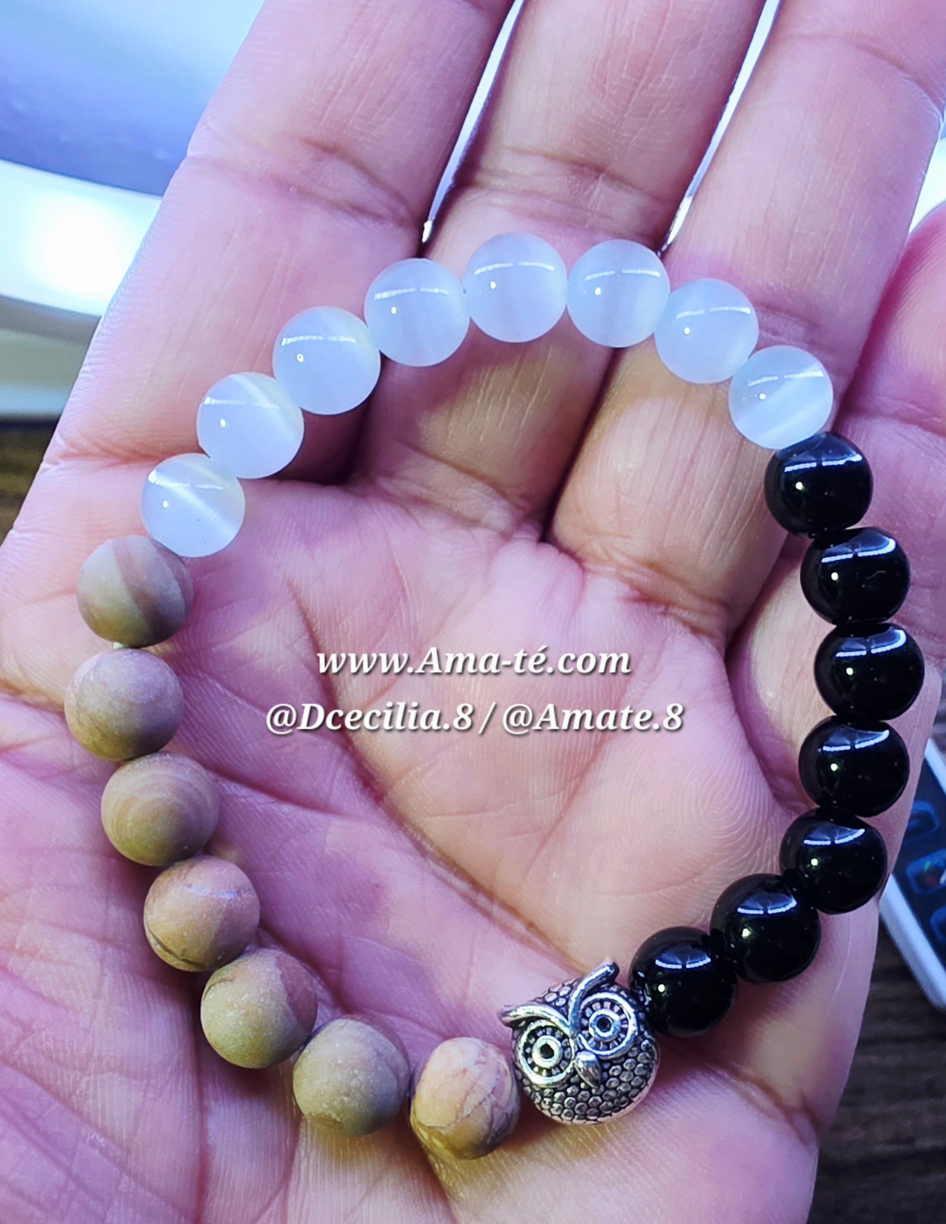 Poderosa y pulsera de cuarzos obsidiana negra, selenita y palo santo, intencionada para para la sanación y purificación interior ademas de proteger y bloquear contra energías negativas.